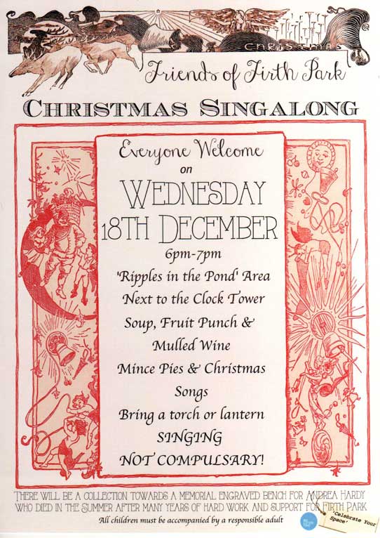 There will be a collection for an engraved bench in Firth Park for Andrea Hardy who died in the Summer, and who did so much for our Park – including reviving the Summer Festival in 2000.