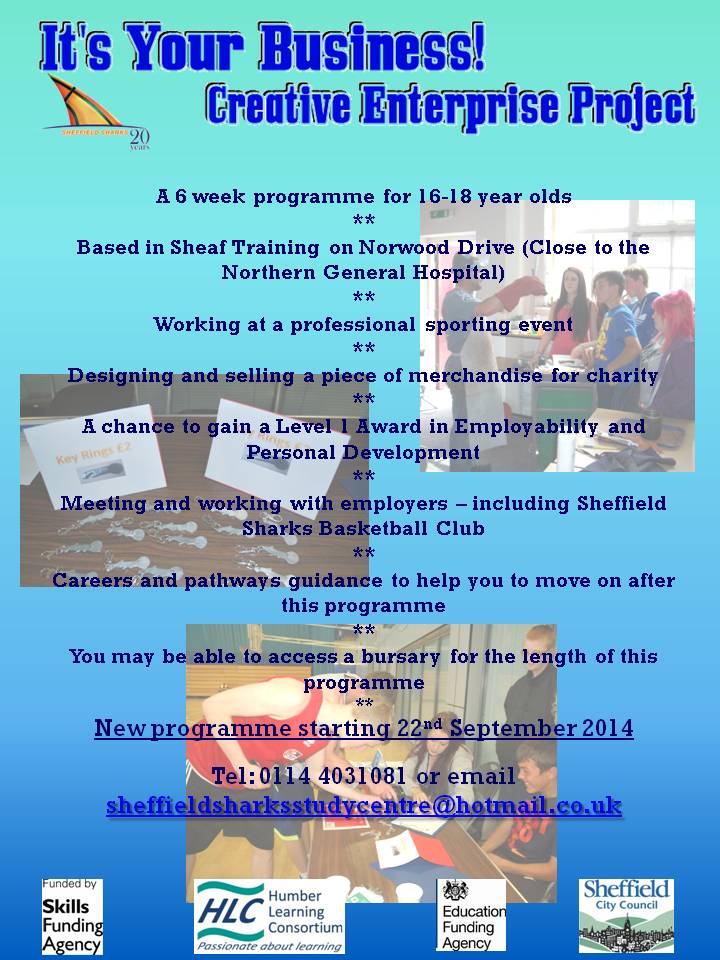 Contact: Tel: 0114 403 1081 or email: sheffieldsharksstudycentre@hotmail.co.uk